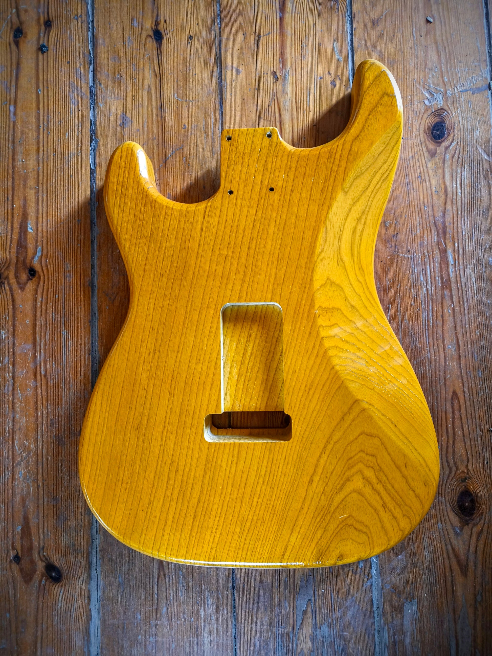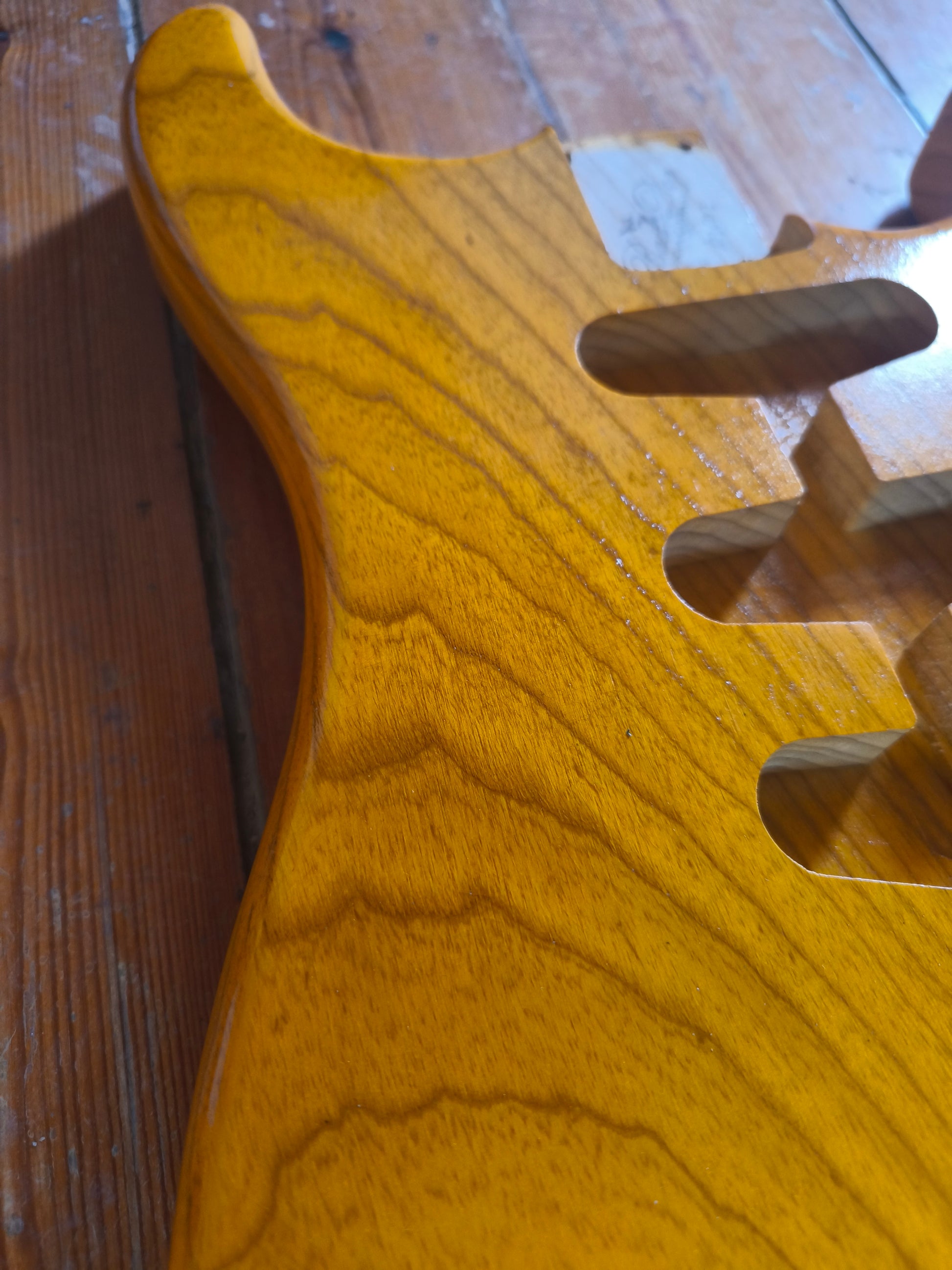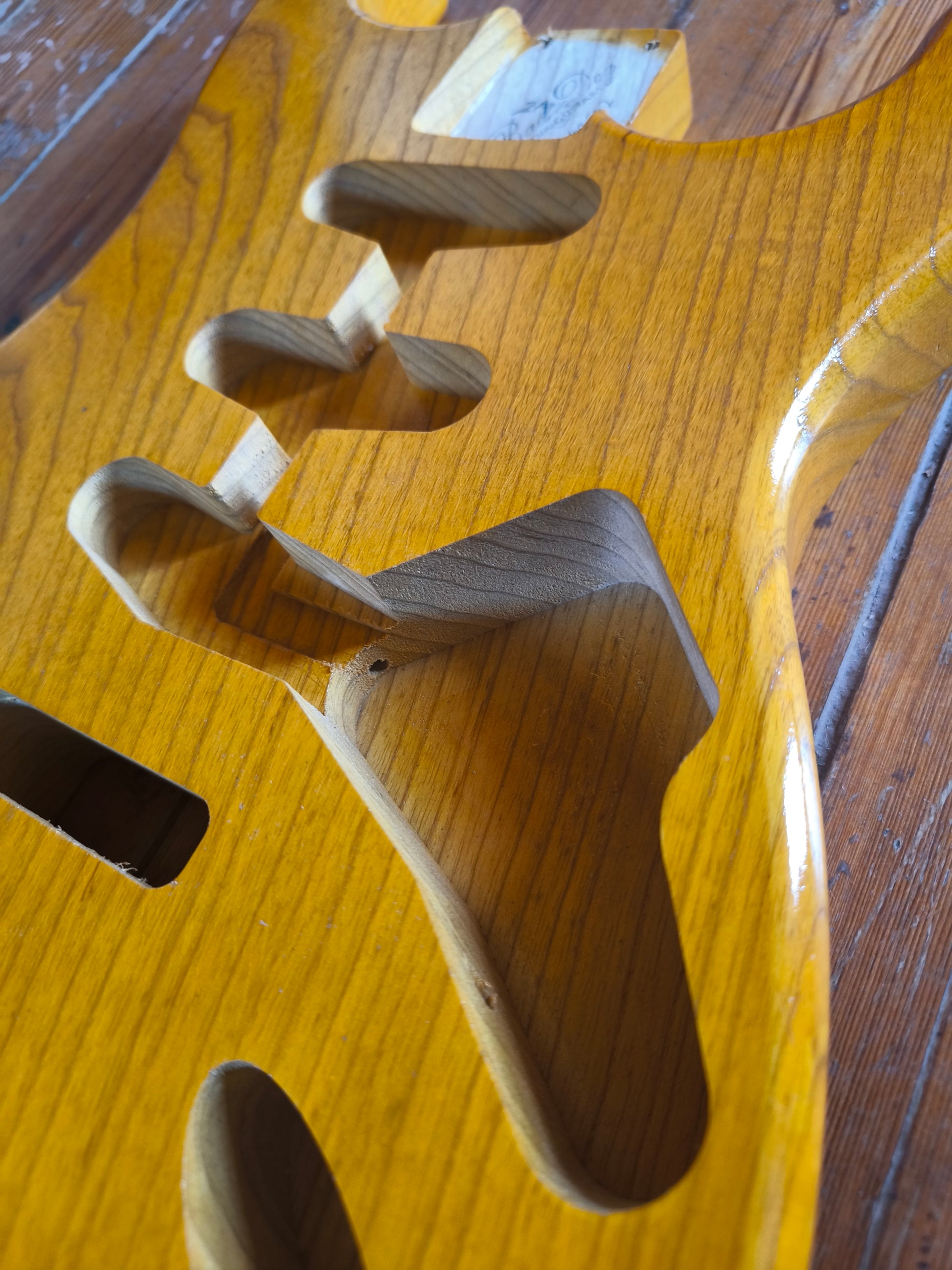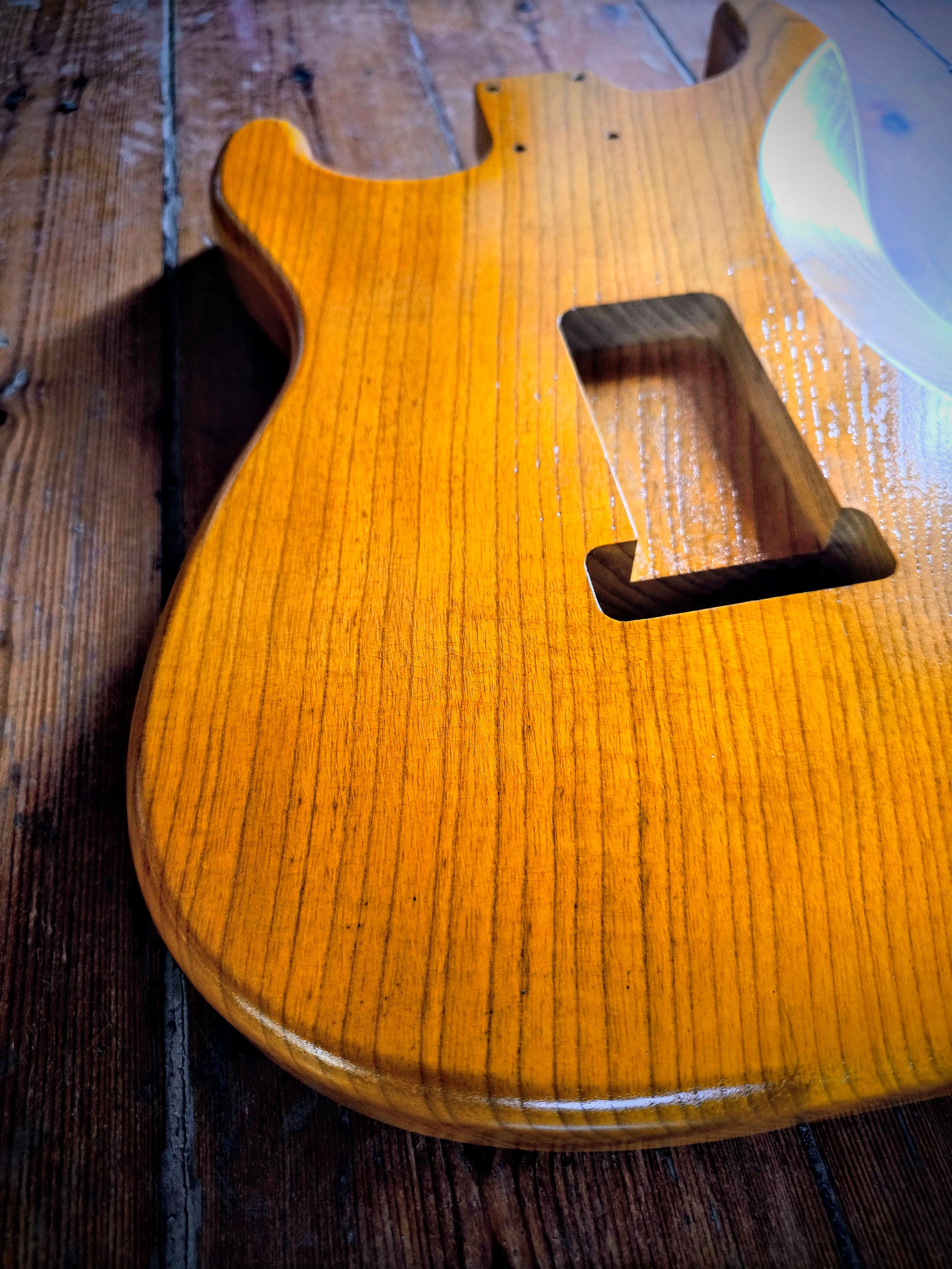 Cuerpo estilo Stratocaster®. Fresno Americano 1 pieza. 2kg. Butterscocth. Nitro.