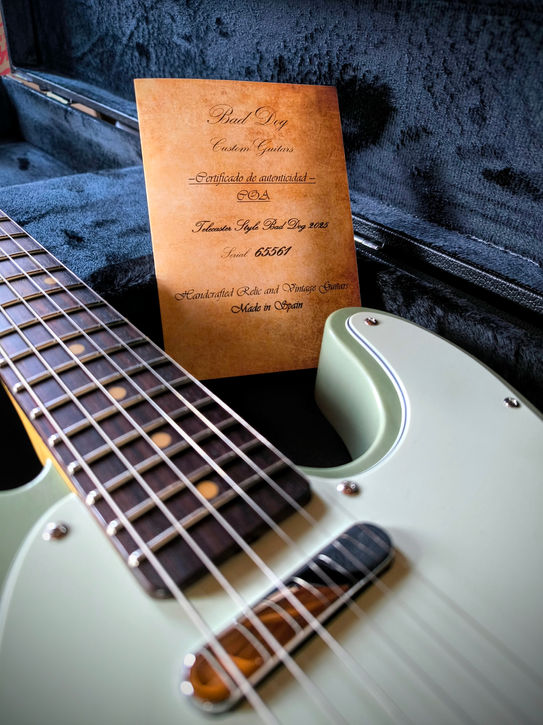 Los "Custom Shop Orders" se realizan exclusivamente con componentes de Bad Dog Custom & Relic Guitars o de proveedores habituales y contrastados.